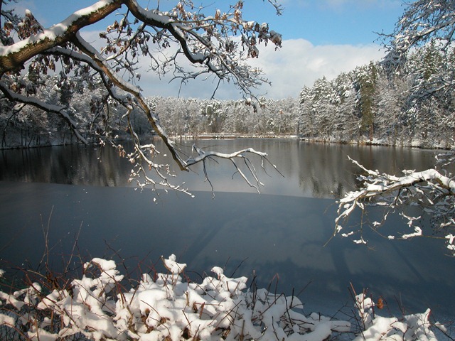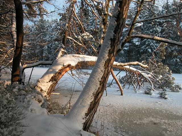 Alleine von unserem Ufer aus sieht man 3 in den See gefallene Bäume. Im Weichselbrunner Weiher sind ebenfalls 3 umgefallen oder geknickt.