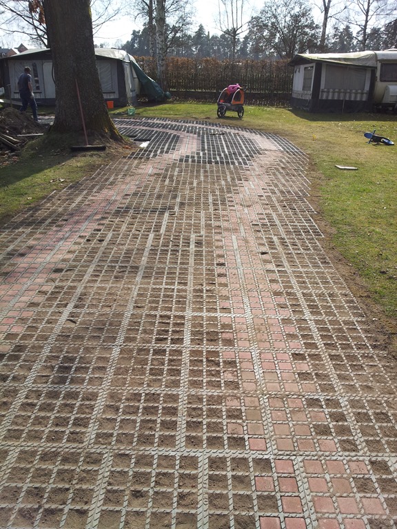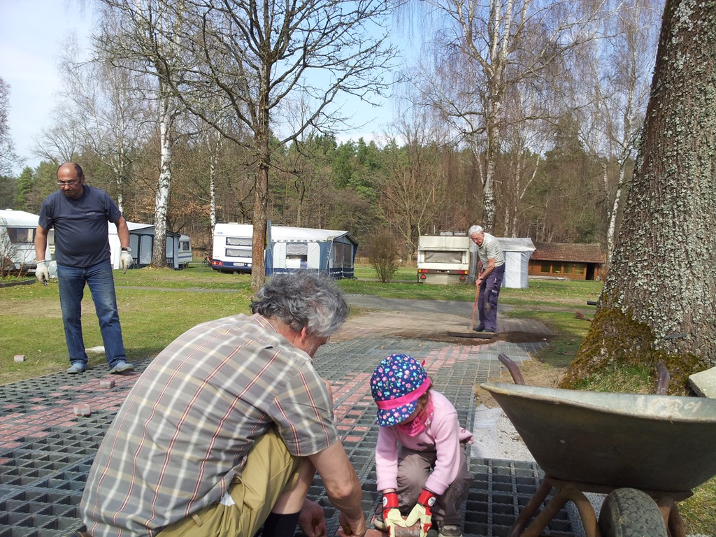 Eine weitere Rasengitter-Fahrbahn entsteht gerade auf See-Camping Weichselbrunn. Bei schönstem sonnigem Frühlingswetter, auf das wir seeeehr laaaaaange gewartet haben.