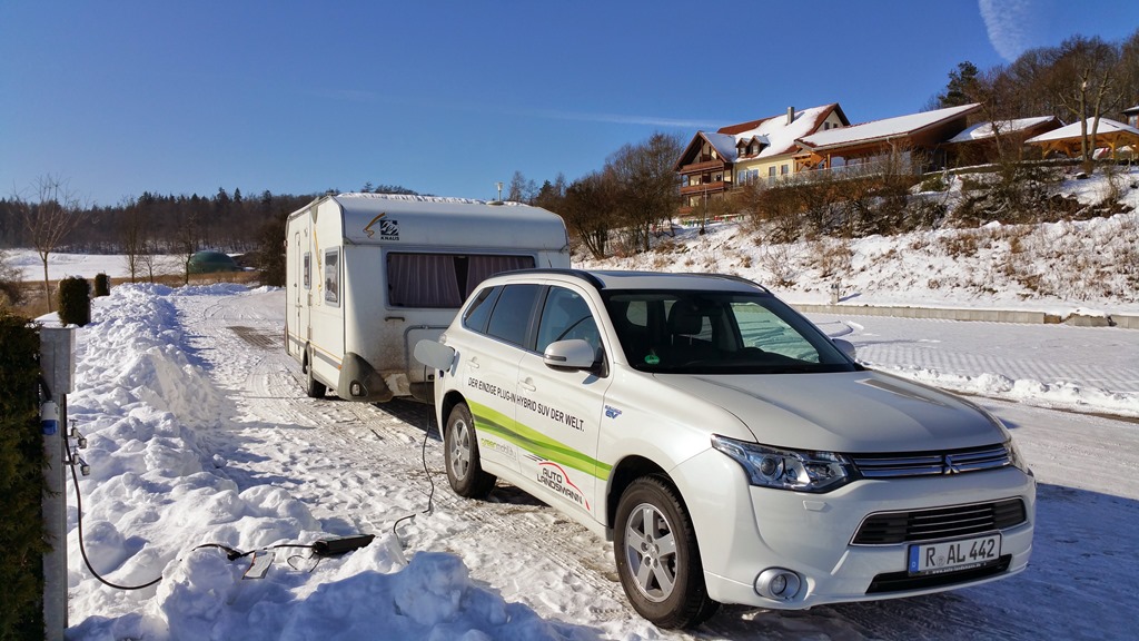 Seit 5 Monaten (11/15) fahre ich den erneuerten Outlander PHEV Hybrid SUV. Auch ich hatte Zweifel ob der Outlander PHEV unseren Wohnwagen (gepackt min. 1500kg) ziehen kann. Denn wir fahren unter anderem seit 30 Jahren an Ostern an den Comer See und zwar über den 2384m hohen Julierpass und den Malojapass. Die Frage war, was passiert wenn die Batterie am Pass total leer ist. Ich hatte deshalb schon schlaflose Nächte, aber nach 3 großen SUV Fahrzeugen (zuletzt Sorento 197PS/ 420nm/ 2500kg AH-Last) wollten wir ein abgasarmes Fahrzeug kaufen. Da wir zu Hause oft im Nahbereich unterwegs sind und unseren selbst produzierten Strom nutzen können fahren wir im Schnitt etwa zu 80% rein elektrisch und bis 52km abgasfrei. Unser Benzin Verbrauch (ohne Hängerbetrieb) lag im Winter bei 3,2l und jetzt seit es wärmer wurde nach Ostern bei 2,7l Liter. Aber auch nach den 52km fährt dieses Fahrzeug dank Rekuperation und die Dank überschüssiger motorischer Antriebskaft in Strom umgewandelte Energie immer wieder längere Strecken elektrisch.