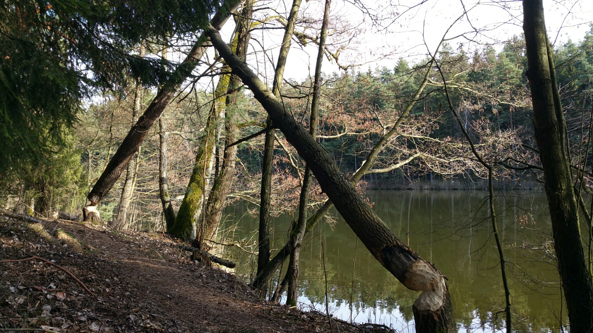 gleich zweimal hat der Biber nicht aufgepasst. Beide Bäume haben sich in anderen Bäumen verhakt.