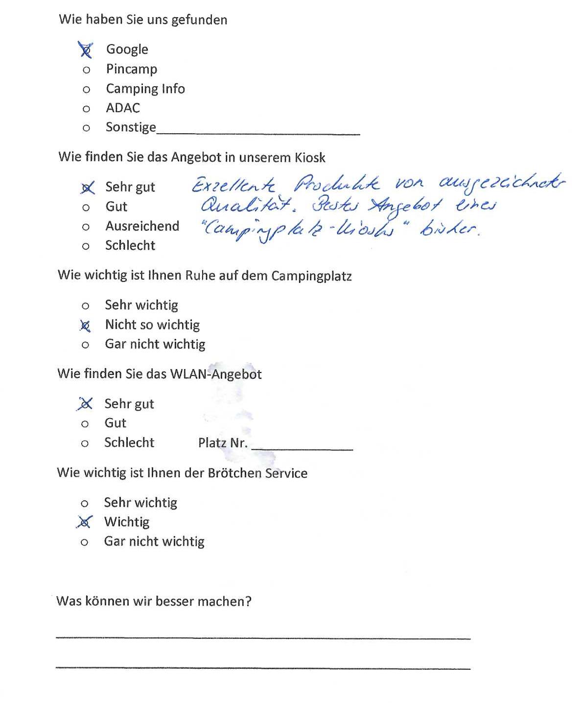 „Exzellente Produkte von ausgezeichneter Qualität. Bestes Angebot eines Campingplatz-Kiosks bisher „