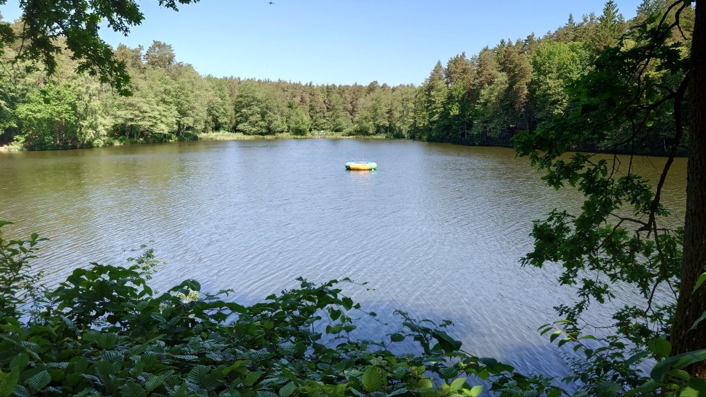 Wassertemperatur ist bei 22 Grad, kein Grund, nicht das schöne Wasser zu geniessen. Wer es bis zum Trampolin schafft, kann auch weiterschwimmen zu den schwimmenden Gärten von Weichselbrunn vor der Weichselbrunner Brücke.