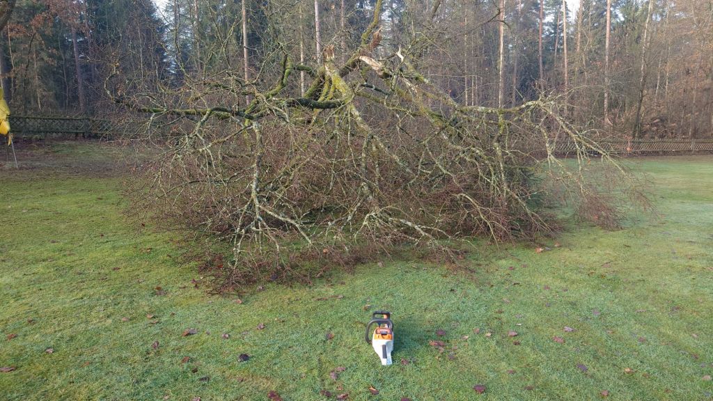 Zunächst ist mir warm geworden beim Gedanken an so viel Brennholz. Dann ist mir warm geworden beim „Haare schneiden“ des 14 m langen Ungetüms. Außerdem kam immer wieder ein „Schade“ Gedanke.